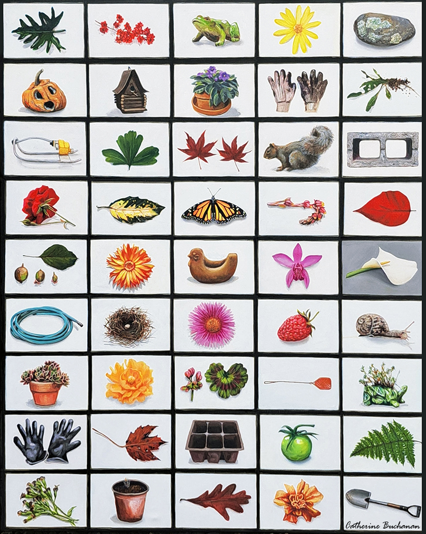 The paintings at Wired Gallery, inspired by a series spanning forty years, began while working in museums photographing historic objects. I started seeing collections everywhere, in mud flats, closets, yard sales and more. Everyday things revealed a story that could be told within the format of museum object photography.